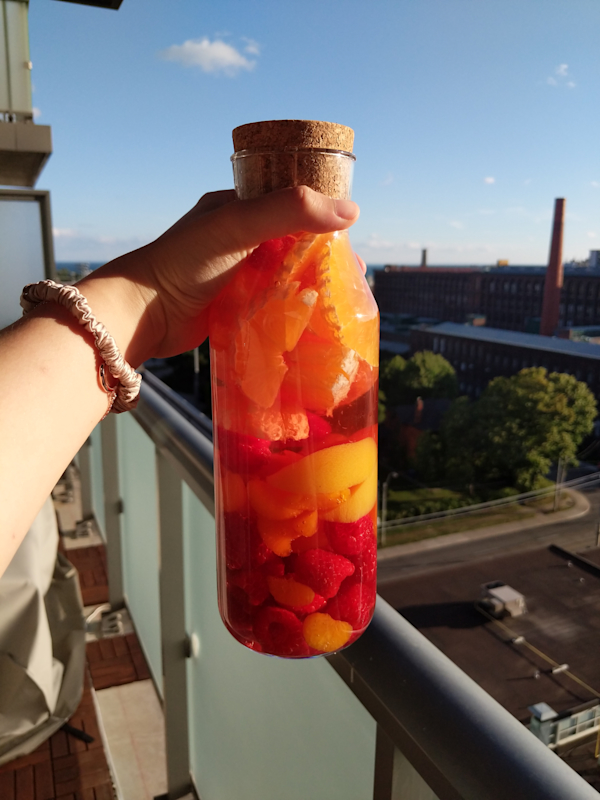 Let the mixture sit in the fridge for 2-24 hours. The longer it sits, the more flavour it will absorb from the peaches and berries. Too long and the fruit starts to get a little too soggy and soft though. That’s why I usually aim for the 6-8 hour range, but not longer than 24.